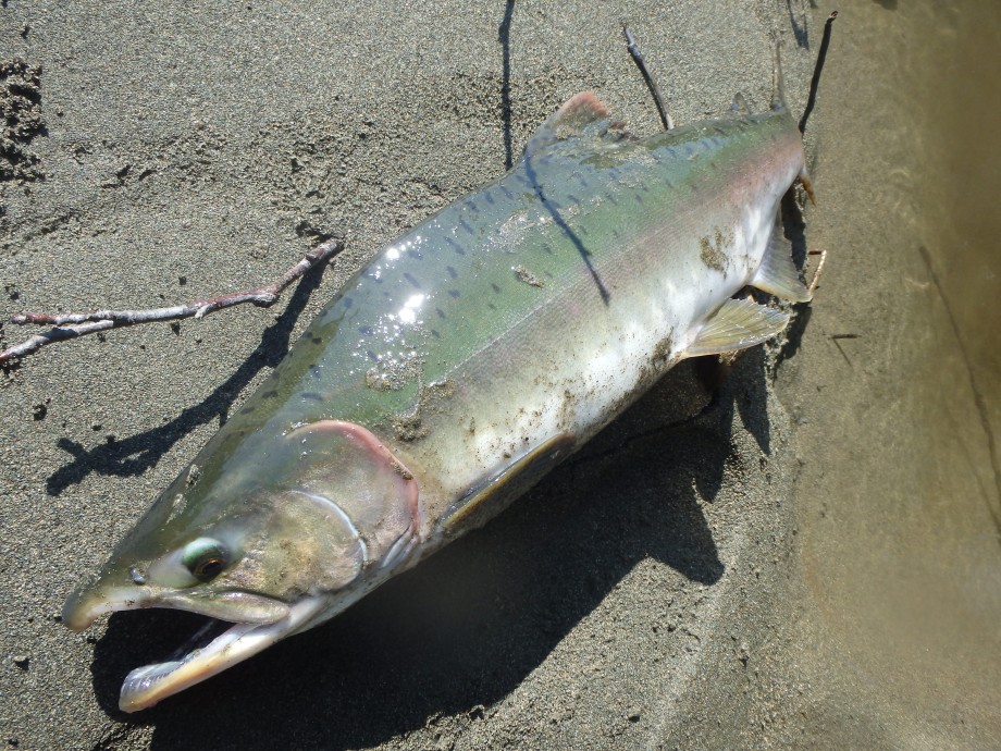 ピンクサーモン2枚。上と下の魚はそれぞれ違う川で釣ったものですが色が全然違います。この辺を面白いと思ってしまうと釣り人としては合格なのですが社会人としては失格なのかなと最近思いはじめました。