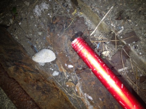 しょうがないから朱色の如意棒(タモの棒)で引っ掛けあげるか‥