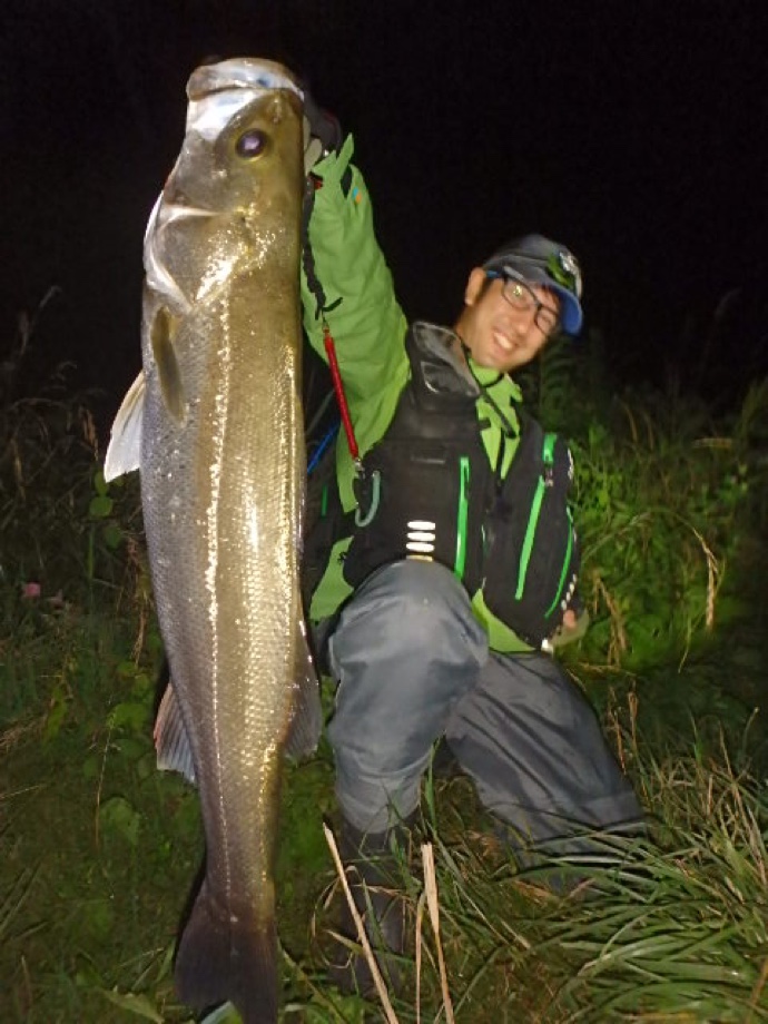 そんな中、私は状況に見合ったルアーを持ってきておらず、エテ公君にルアーを貸してもらい、何とかセイゴサイズキャッチという情けない結果に終わりました。