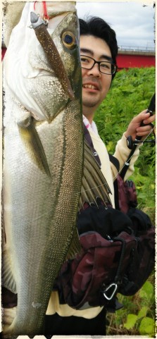 潜られそうになるもなんとか耐えてランディングしたのは、55くらいのシーバス!