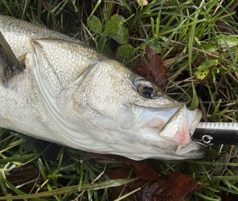 スズキサイズのスズキさんの鰓洗いに感動しつつ初心者なりに竿をさばいて落ち着くのを待って空気吸わせて無事キャッチ!!!!