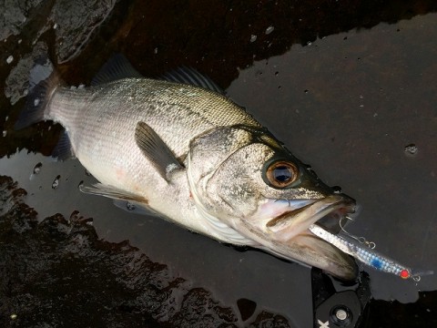 ガツン!とドーバー120Fを丸呑みしてくれたヒラスズキ君♪(一匹目は写真撮って無かったのでコレは2匹目のヒラです)