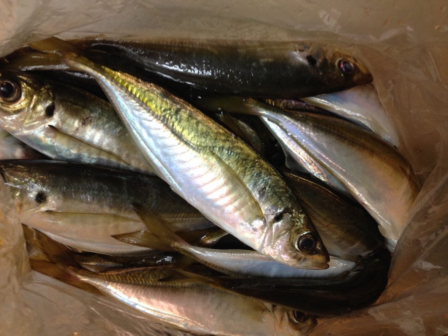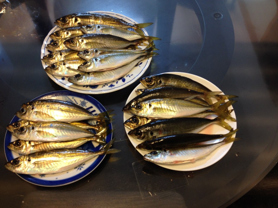 21cmくらいのアジと、26cmくらいのアジに分かれており、26cmくらいのアジはほぼ全部白子持ちか卵持ちでした。21cmくらいのアジは1年目アジ。今晩は刺身、フライと美味しくいただかせていただきます