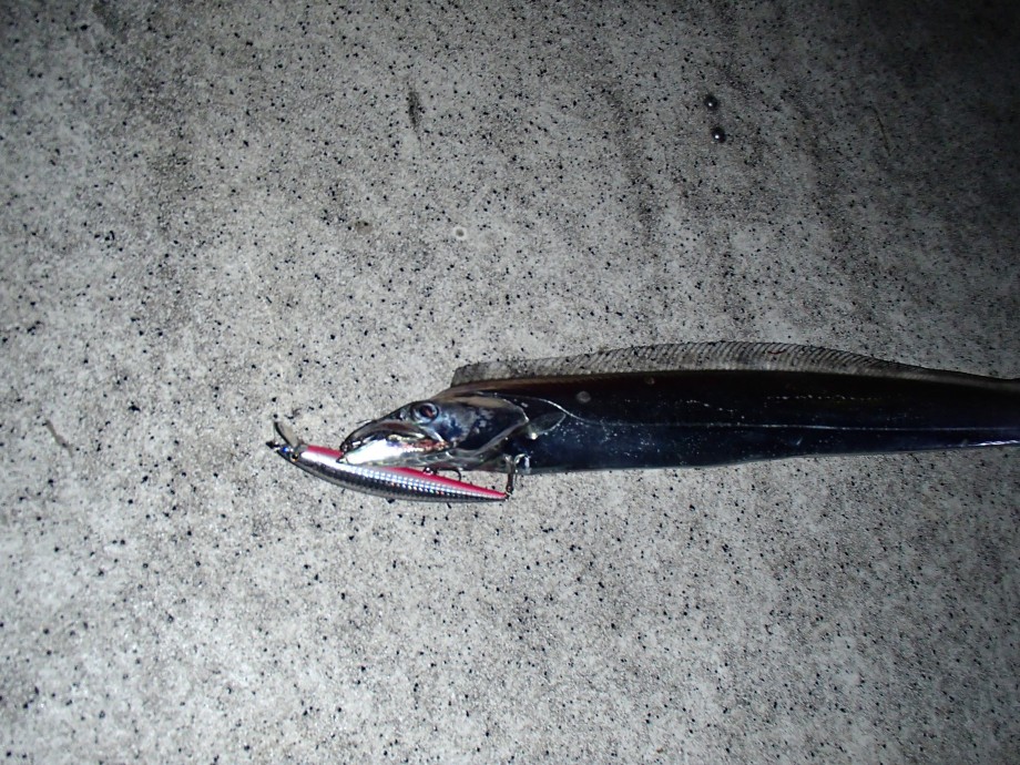 手前まで寄せたら指4本あるなしの太刀魚