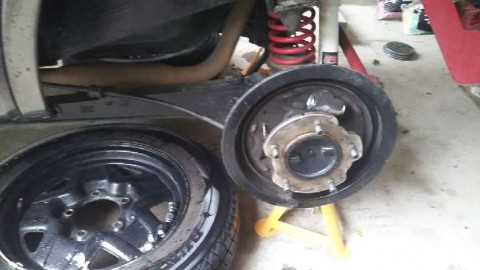 元通り組み上げて家族にブレーキ踏んでもらってエア抜きし、車庫内でブレーキの効きを確認後、試運転して完了