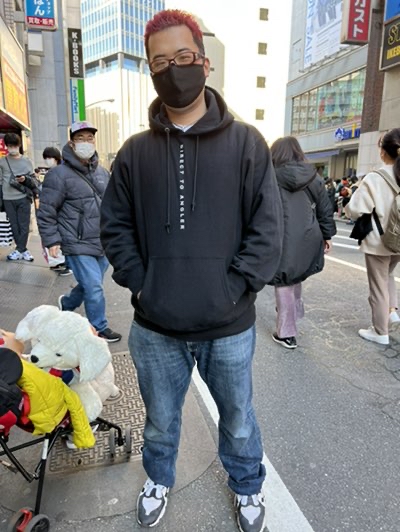 身長172センチ体重85キロくらいの自分が着るとこんな感じ!着た感じ少し余裕がまだあるのですがパーカーとして着るならこのくらいがちょうどいいかな?