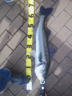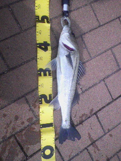 昨日実家で飲み過ぎて寝坊したのでメバルは不発。昼前に子供二人と凧上げに海岸へ。なんか沢山人が海覗いてる?カモメも沢山集まってる?覗いてみると一面にベイトが!しかも時々シーバスが下から襲いかかってる!急いでタックルを取りに戻りバイブをキャスト。暫く投げてるとゴンゴンきました!(^-^)v50から40ぐらいですが結構引きます。コウメ、レンジバイブ、サルベージトリノとローテーションしながら息子と交代でキャストしてると息子にもヒット!4本ぐらい同じサイズが連発(^o^)v息子の友達家族が散歩にきたので挨拶した直後にまたヒット!コイツはデカイ!タモがなかったので大丈夫かと思いながらラインを掴んであげたのは70オーバー(^o^)vそのあとも2本ぐらい追加して満足でした。また明日も行ってみよ。