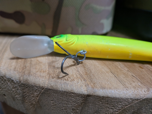 先日バーブを潰しまくった新品のフックに交換。きちんと管理してる人は先端が鈍ったら交換されてるようだけど、そこまでまめに管理してない僕には、たまに曲げられるぐらいでちょうど良いのかも。