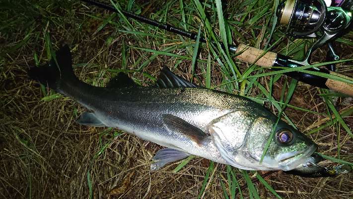 もう出ないわな…と思っていたら手前の橋脚のキワからシーバスが飛び出してきた。