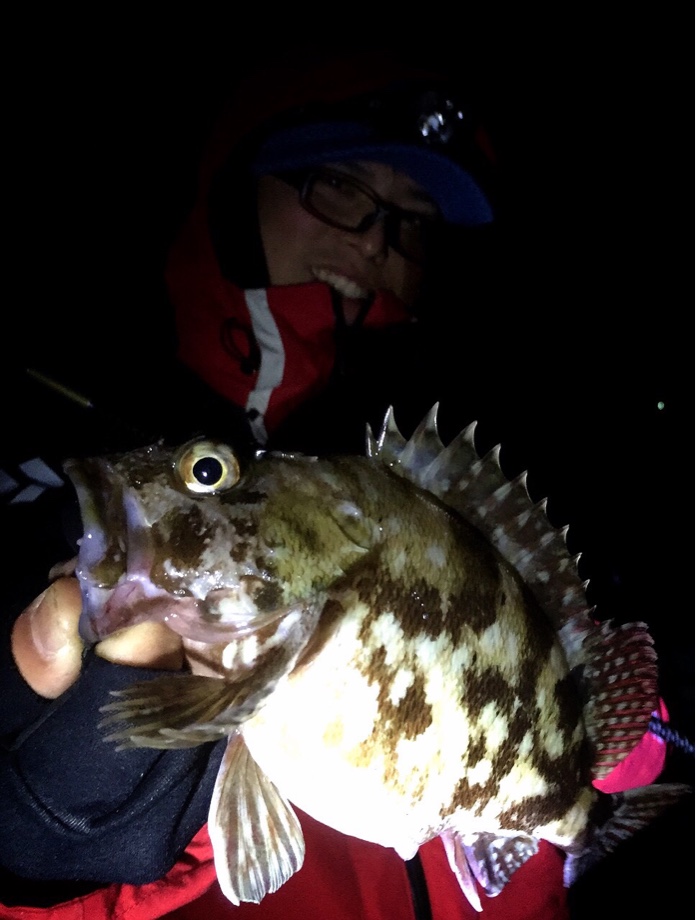 ナイトロック!こんにちは! この日は夜暇だったので、産卵で入ってきてるブリブリのアラカブ狙いへ。 ナイトロック! フィッシュ(笑) メチャクチャ寒い夜で、すぐに手は悴み震え、釣り中に何枚上着を重ね着したか(笑) でも、ワームをちょんちょんするとすぐにカプッ♪ 釣り歩いていくと、こんなサイズが連発♪ 20後半の良いサイズで、お腹はダルンダルンのデブンデブン^^ まだまだ釣れますので、お手軽のライトフィッシングおススメですよ~♪ iPhoneからの投稿