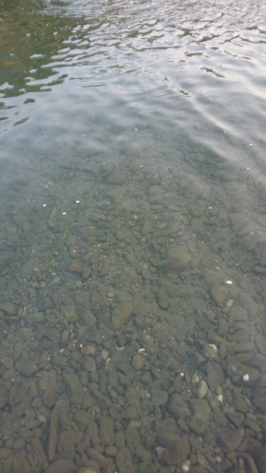少しポイントを下流へ移動して、流れの緩む付近で様子を見ていたら