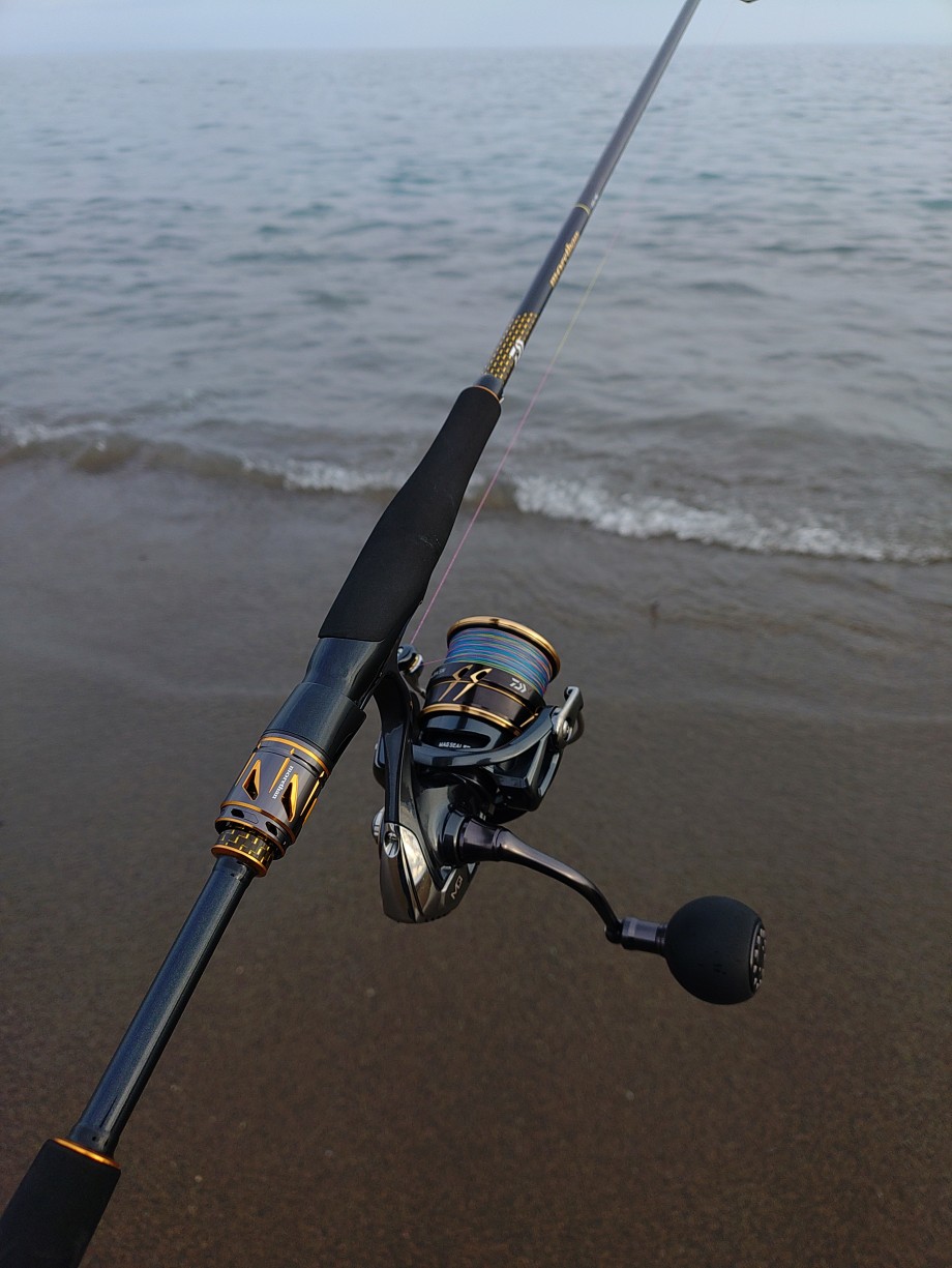 うむ、いいねぇ。ロッドに合わせてもうちょっといいリール合わせてあげたいが、色合いは良し。カルディアSW気に入ってるし、しばらくはこの組み合わせだな。