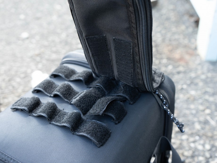 裏側は2本ベルクロテープが縫い付けられており、MOLLEシステムが搭載されているバッグなどには特にガッチリ付けられる仕様になっています。