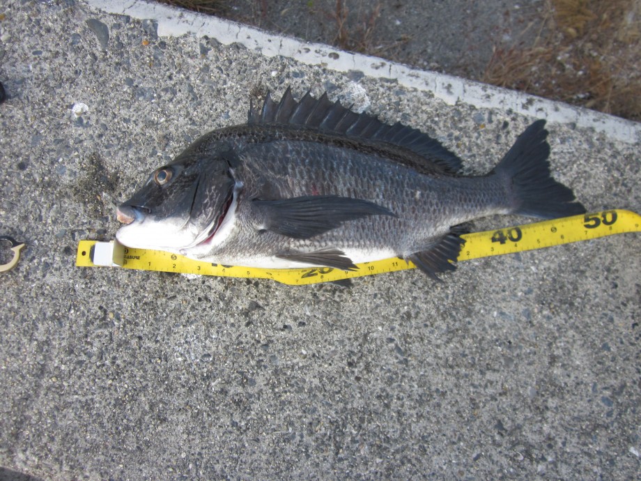 色も、魚体もきれいな、そこまでデコウないサイズのチヌ?いや黒メバルを釣り、こいつを我が家の長男の贄とすることにしました。