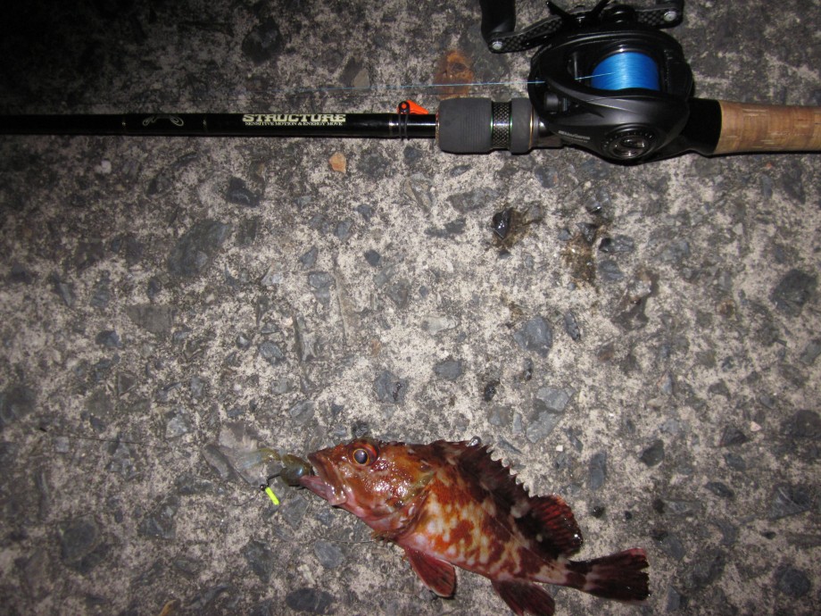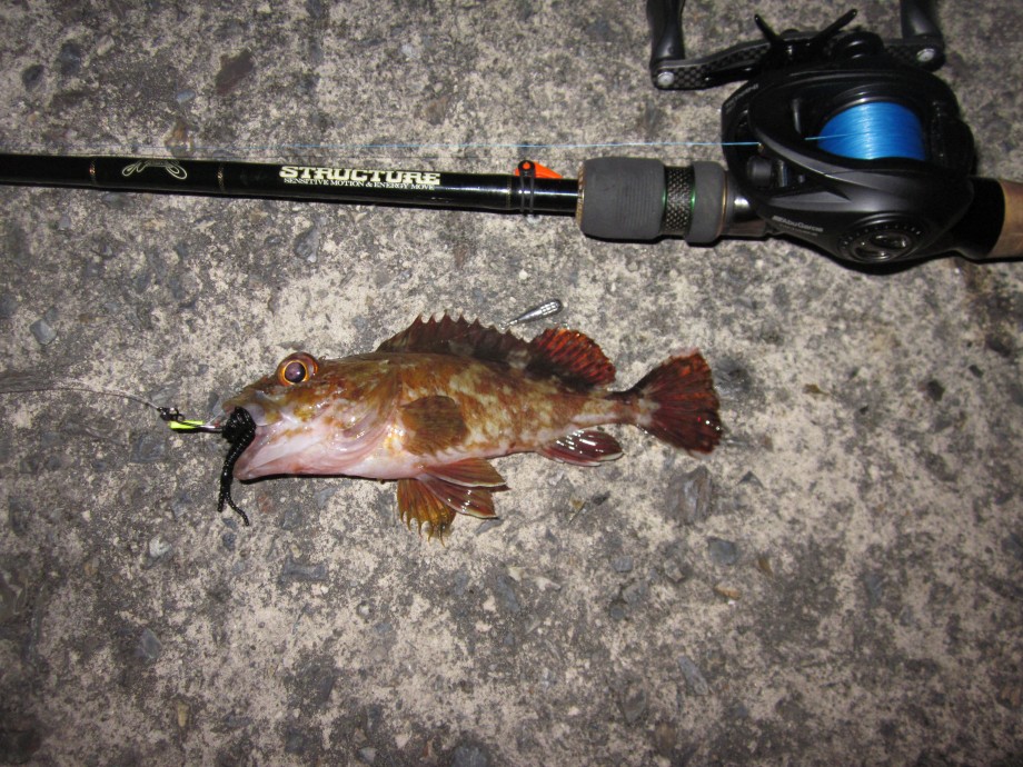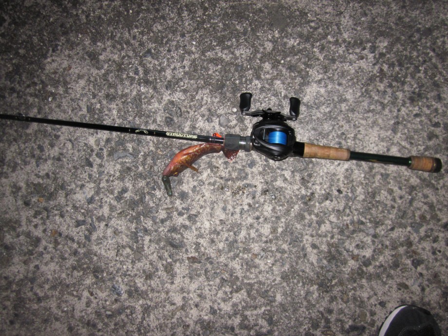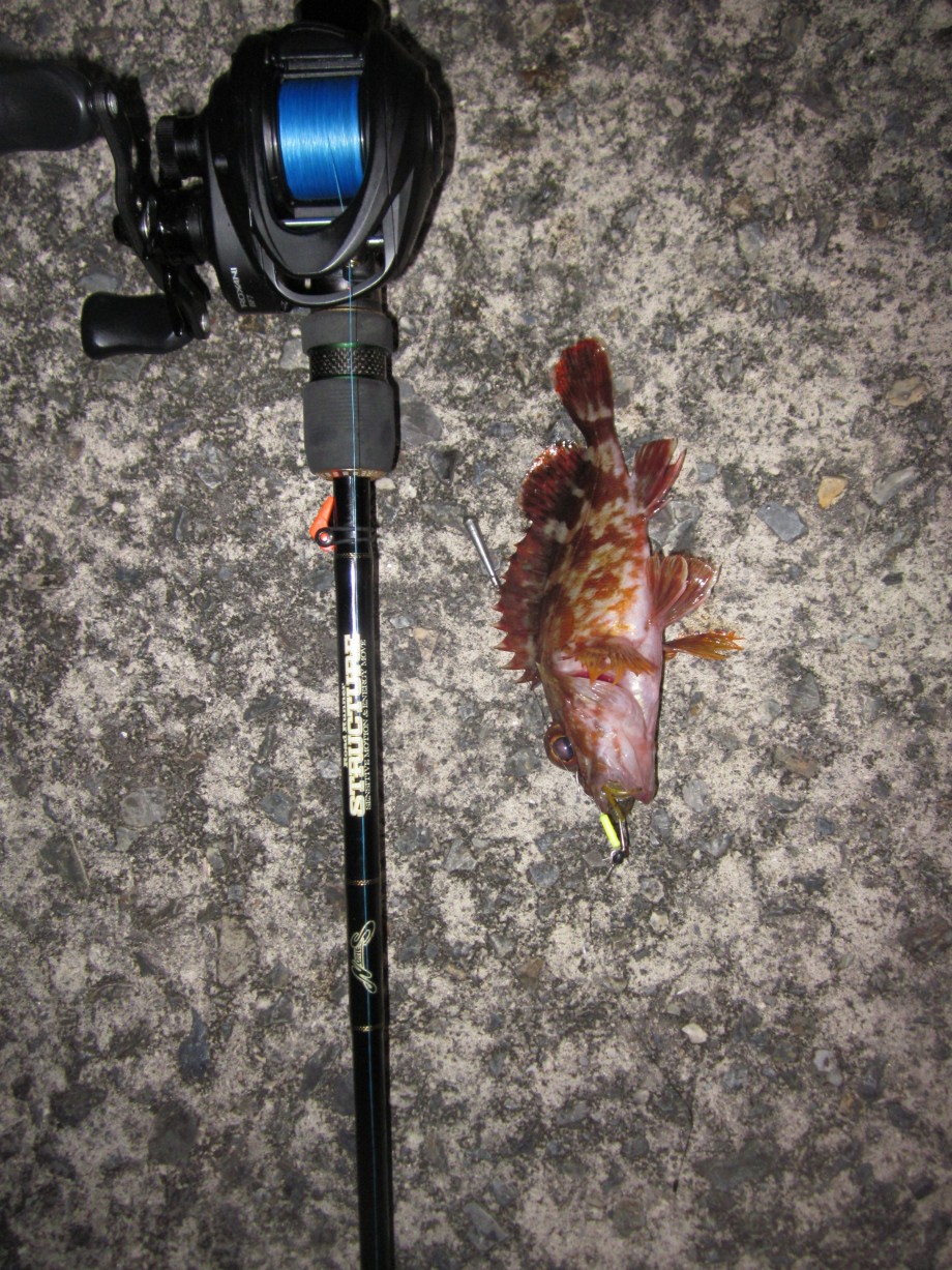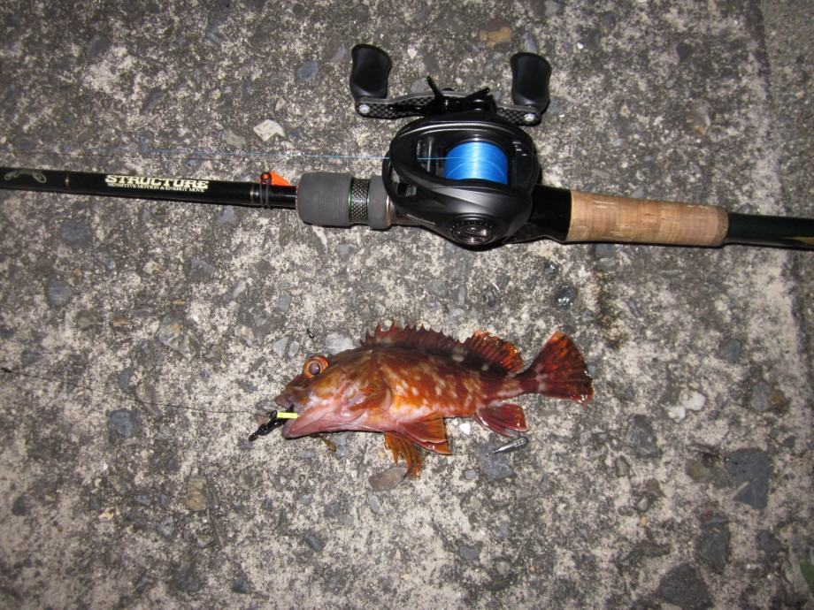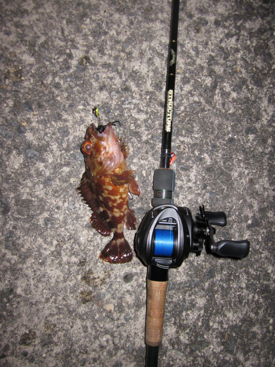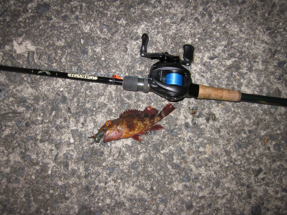 - (バスロッド, シーガー グランドマックス, D.A.S., おもしろ研究, LEDLENSER MH5, カサゴ , ABU 24ロキサーニBC BF7, バリバス8, ダウンショットリグ, タングステンシンカー, ロードランナー ST650M, ZX-R30, AR-Wピンテール, Roccking cafe, フリーショットリグ)