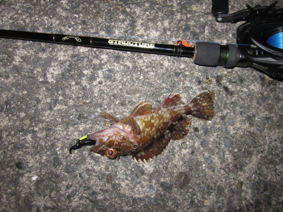 かわいいサイズが多い。3.25インチのピンテールを10センチそこそこのカサゴが食う。