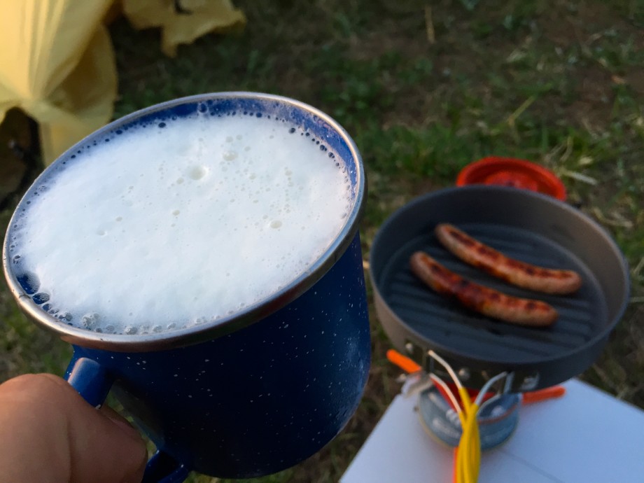 夕日が終われば富山を一望する夜景に星空、朝テントから出ると絶景でのコーヒータイム。