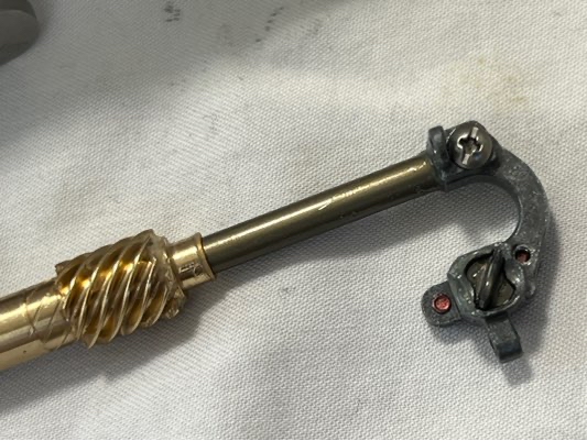 このスプリングはテンションが掛かる奴です。で、ウォームシャフトはギヤに刺さってるだけで固定されず2本のOリングで止まってるだけと、、、