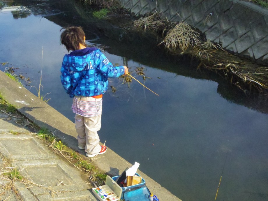 親子のコミュニケーションには釣りをしながらの会話の出来る餌釣りは丁度良い。水深も深くて80cm、流れも無いので安心して連れて行くことが出来る。
