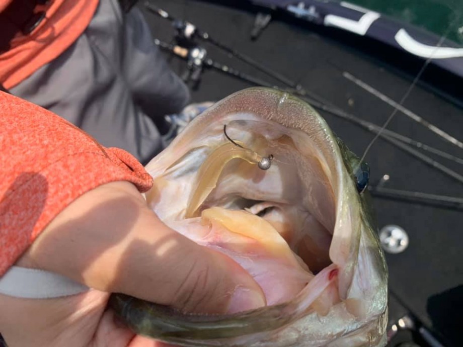 前日は5バイトノーフィッシュという辛すぎる展開だったので、魚を探してランガンしながらスタッガースティック5インチで全員で5匹ほど釣って午前終了。