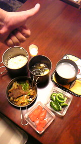 キャンプ生活も終盤を迎え、一人寂しく打ち上げ。