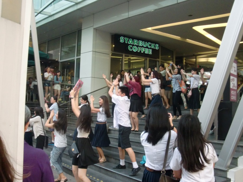 突然踊りだすタイJDたち。そうそう、タイの女子大生はみんな制服を着ています。すばらしい。