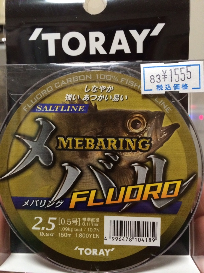 ちなみに#0.5の2.6lbにするつもりでした。で、ご覧の通り、東レは#0.5で2.5lb。0.1lb少ないけど、お値段‼︎1555円の税込みですよ、しかもちゃーんと150m巻き☆★☆