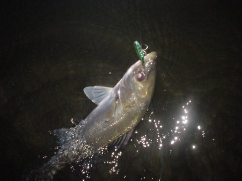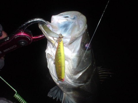 そして流れからルアーが抜けた後に、やや速巻きで・・・