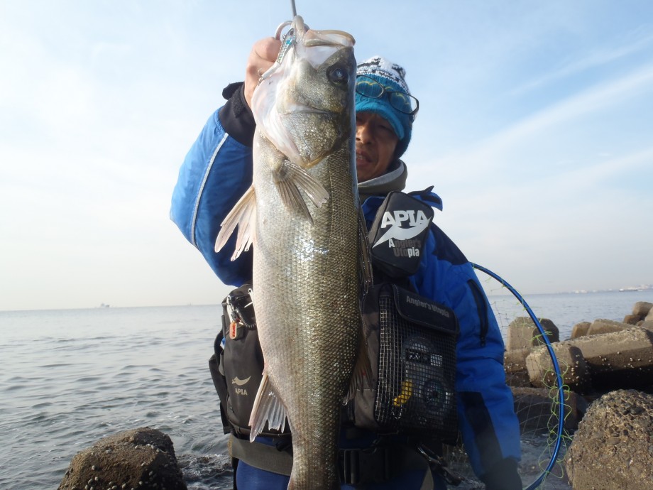 途中、一服しながら気持ちの良い朝だな・・・と浸りながらテトラに座り込む。
