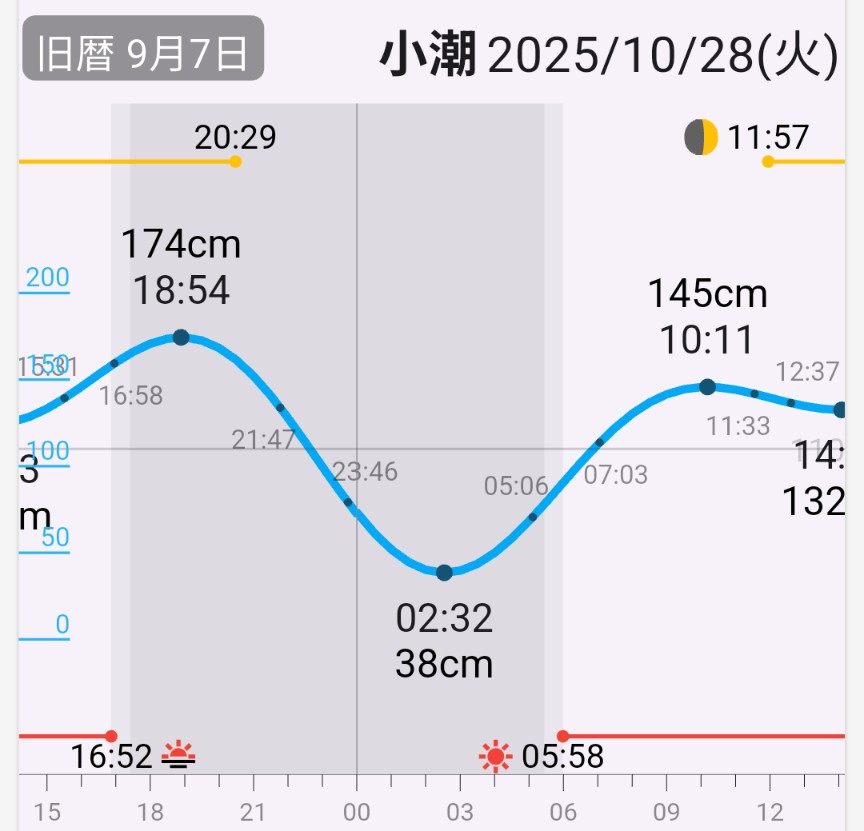 最終日に於いては最干が翌日AM02:32、入水可能が早くて22:00頃からの平日月曜日。