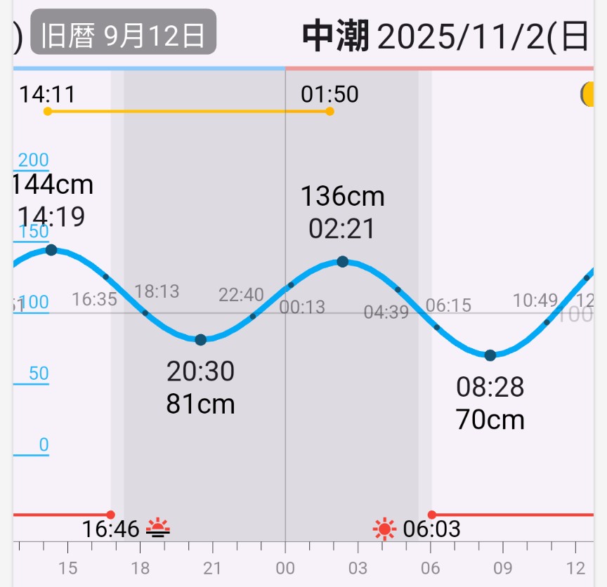 ただ、浸からない分狙いの場所が十分な潮位に達するのは夜中の1時頃から。