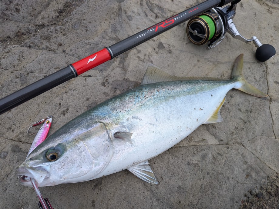 釣れなくても釣れなくても、諦めることなく意地で通って通って、磯の青物ゲームの幕引きに繋げる魚をようやく手繰り寄せた。