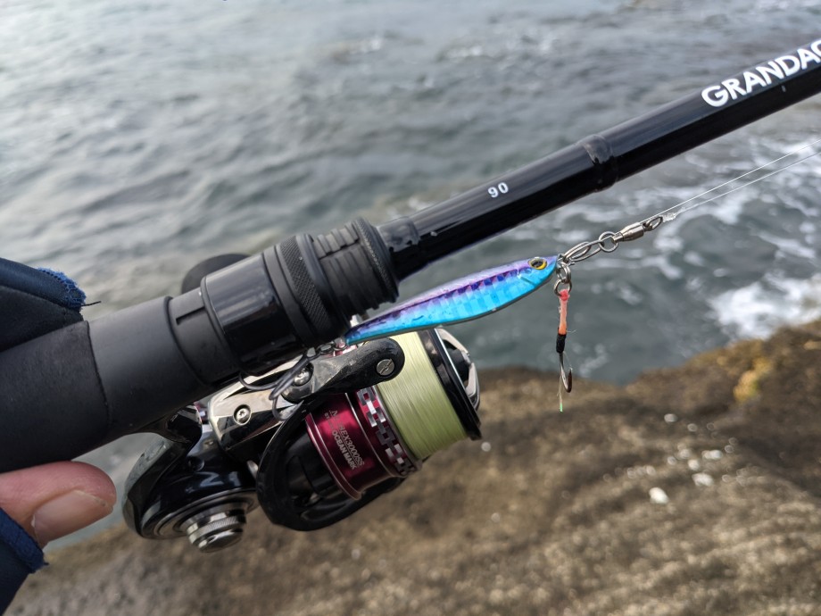 これ、15gと言えども『GRANDAGE LITE 90』のようなフィネスタックルで投げると、150mではスプールが見える位までラインが出てしまう時も。もともとこの釣りでは0.6号 / 200mだったのだが、違う釣りに使っていた0.8号を入れたままに