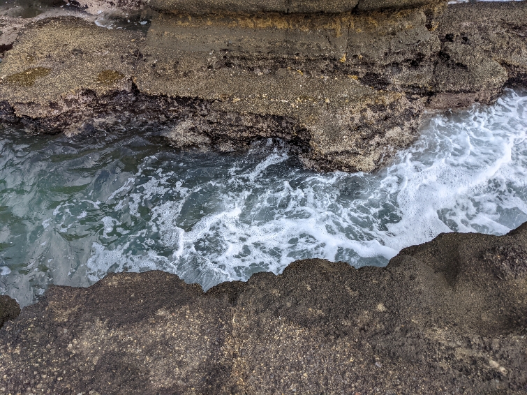 足元のチョイ先から横に伸びる根が4列、沖に向かって連なっている。勿論、通常のタックルならどうってことないが、フィネスタックルな上に潮位も低いことで根のてっぺんも水面に出るか出ないか。