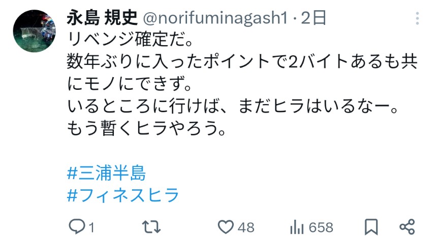とばかりに続けて入った翌日の夜(前話を書いた夜)は、まんまとノーバイト。