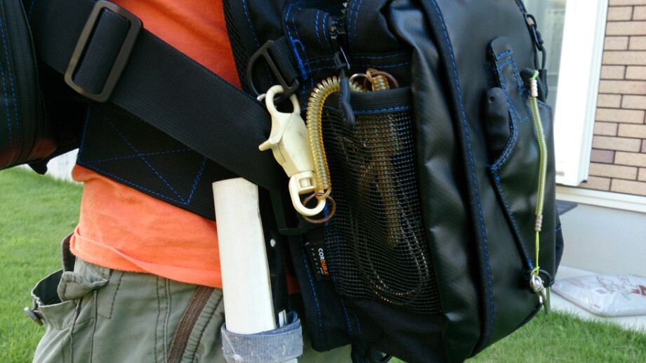 オーシャングリップはポーチの横に着けてみました。