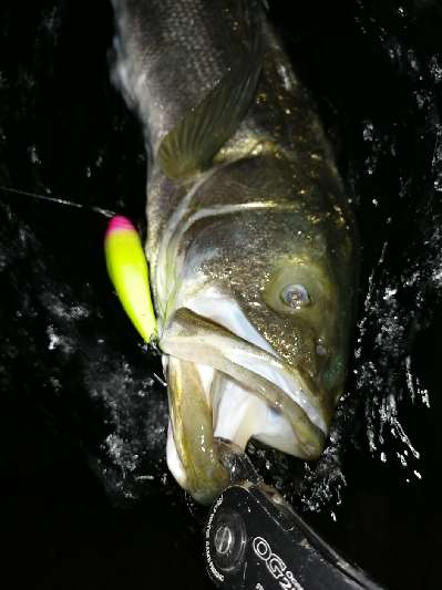 ハーモニカ喰い(^^)カゲロウはシーバスが喰いやすい動きなのか。がっつり食う事が多いですね。バラシが少ないのは嬉しい。サイズは55cmのお子様でしたが。。。