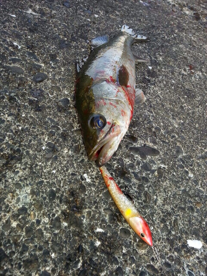人生初のシーバスをトップで、ゲットしました〜