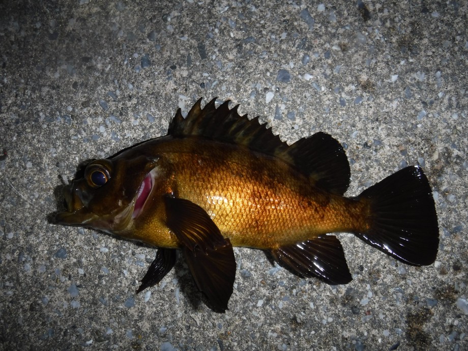 でもこいつ、20㎝近い良型。最初のアタックが明快で、反転が力強かったのでてっきりメバルだと思った。