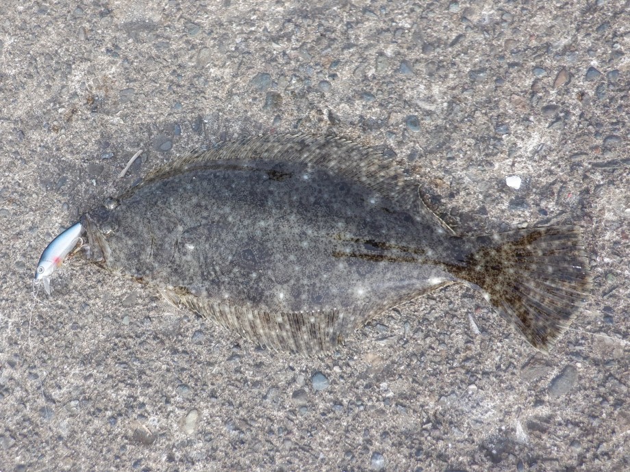 こうして表側を向けると、完全に保護色ですね。今シーズンはソゲが良く釣れます。冬になったらヒラメが良いかな。