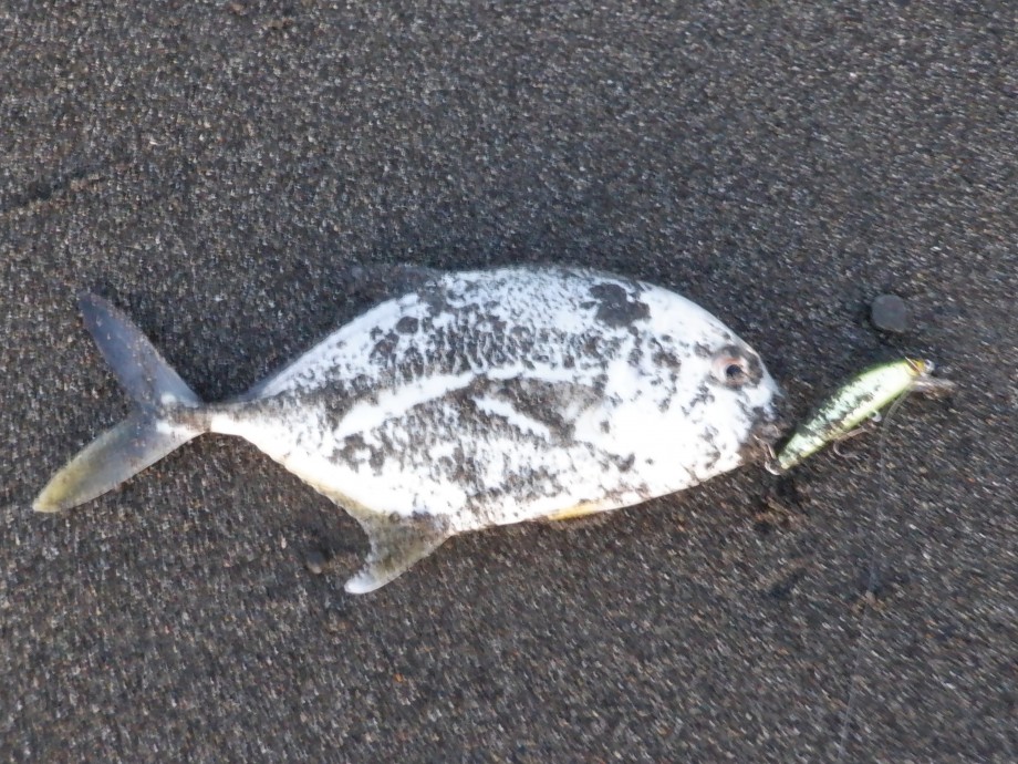 こいつも良い引きをしてくれます。無理すると口切れするので慎重にやり取りします。最後は寄せ波に乗せてずり上げます。