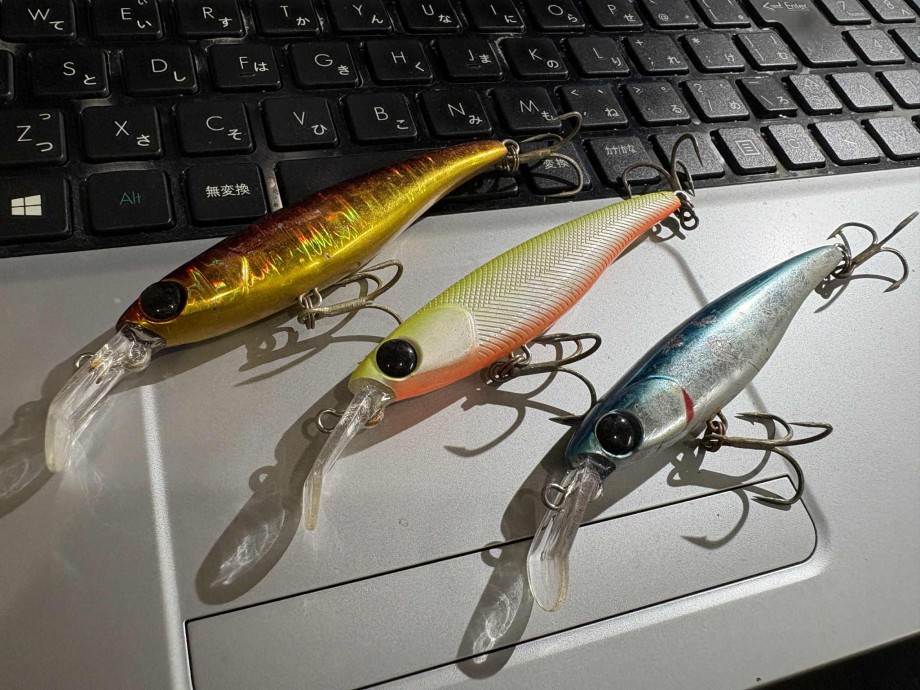 肝心の使用感ですが、90㎜で12g程度のルアーとしては標準的です。見た目のリップの長さに反してさほど潜りません。水を受ける面が2枚になるからか、荒れたコンディションではちょっと挙動がつかみにくいように思いました。