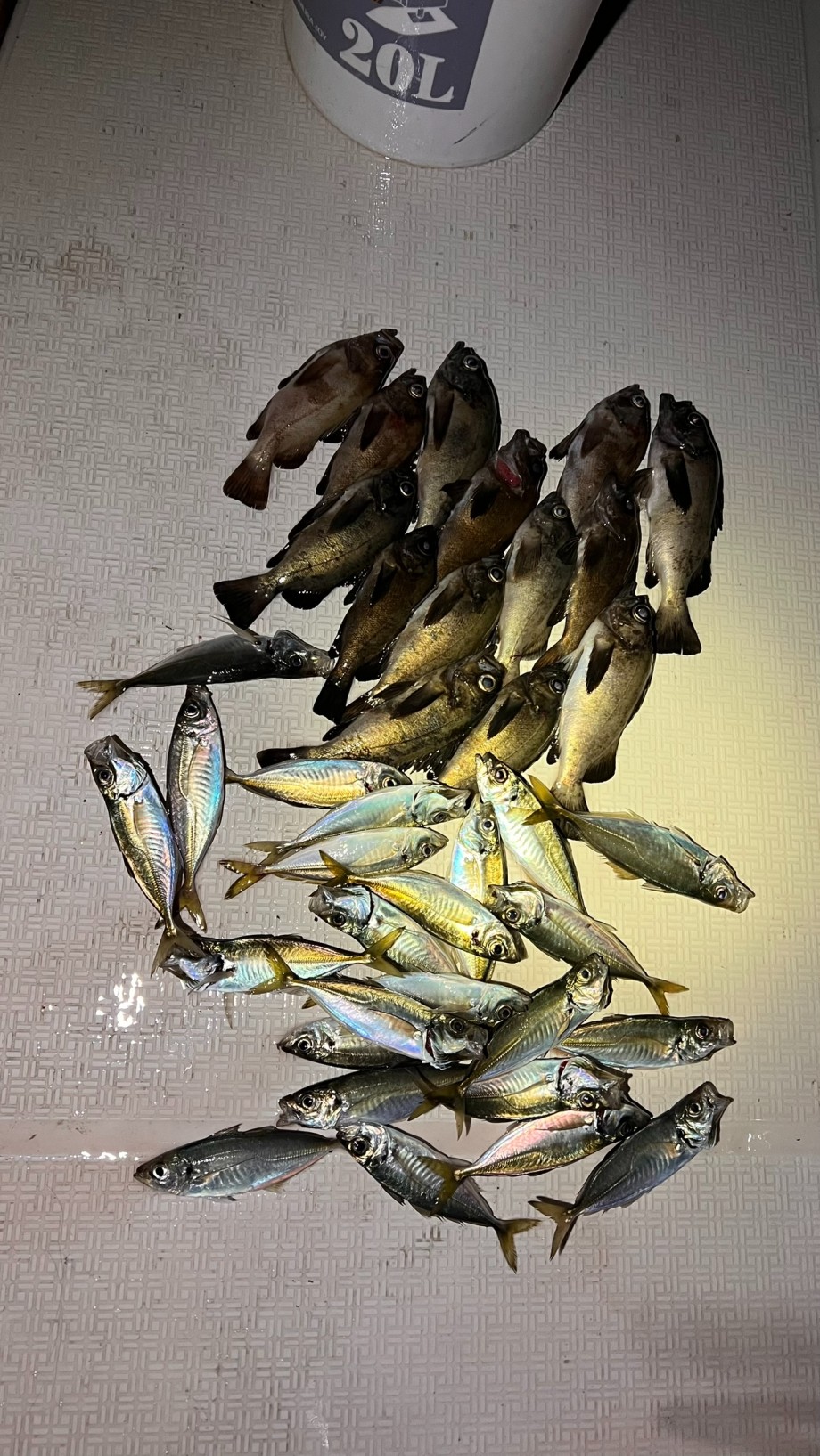 友人Lはアジング始めて初めてのアジだったらしく,自分も久しぶりのアジで,船上大盛り上がり。