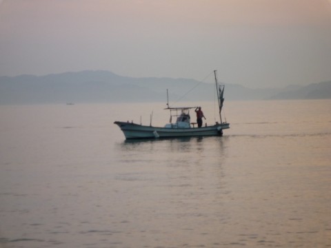 漁船の動きを見てると、昨日より地磯を離れ沖の方を探っている