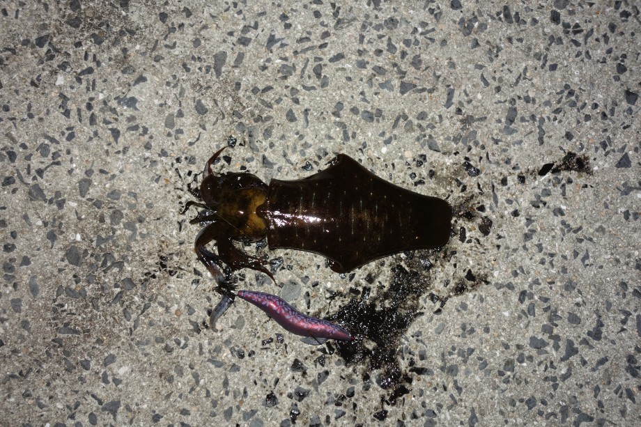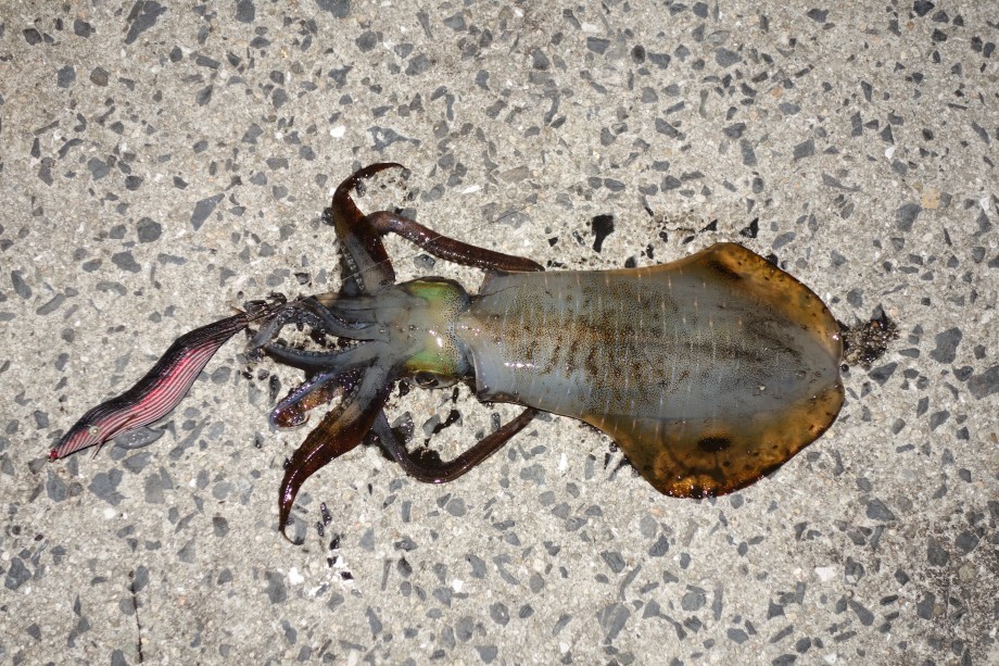 遅生まれの コロッケサイズか 20㎝前後のアオリ