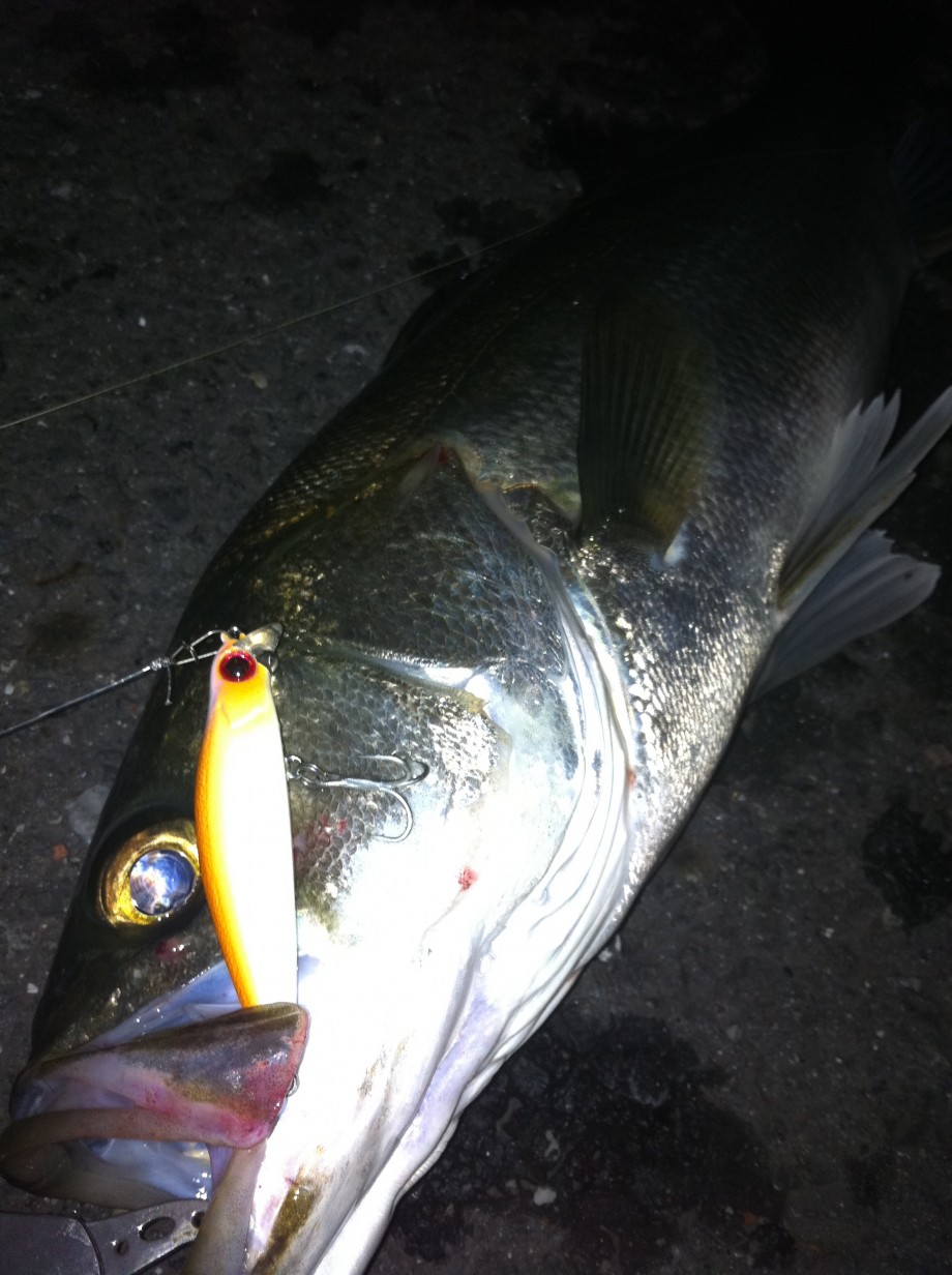 魚っ気はありそうだったんで潮がぶつかる護岸沿いを打つとゴゴンと良い魚の反応。