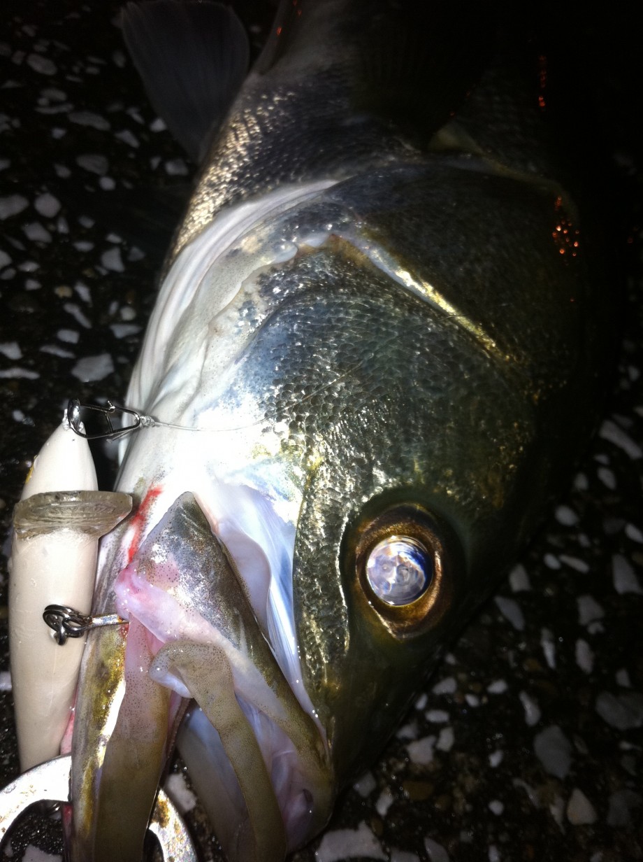 なんとなく掴んだけどバイトやバラシが続いたんでルアーチェンジ。エアオグル70SLM1投で答えが出る。