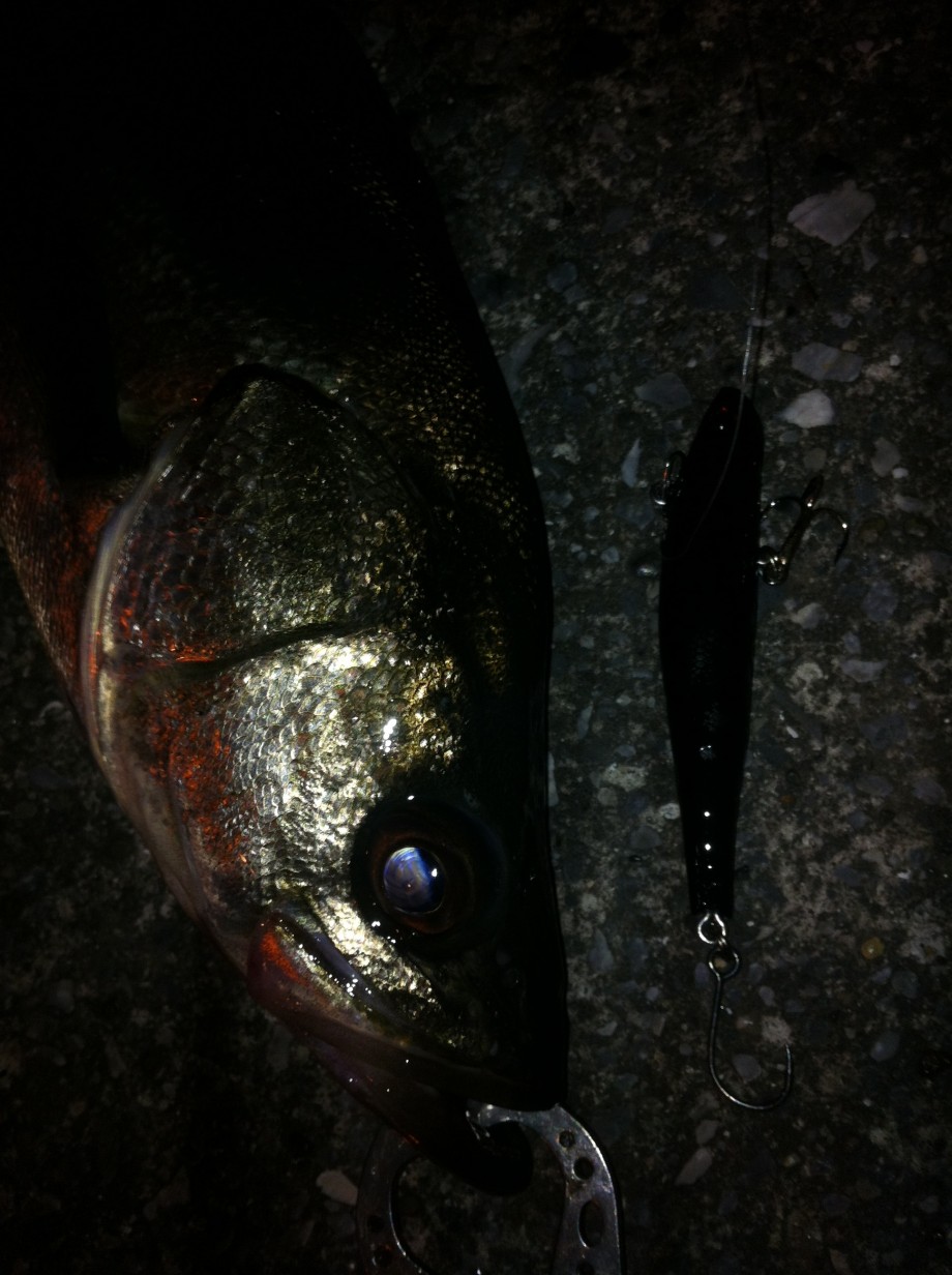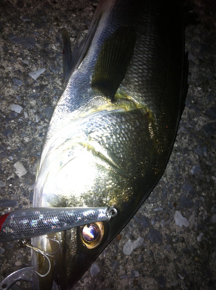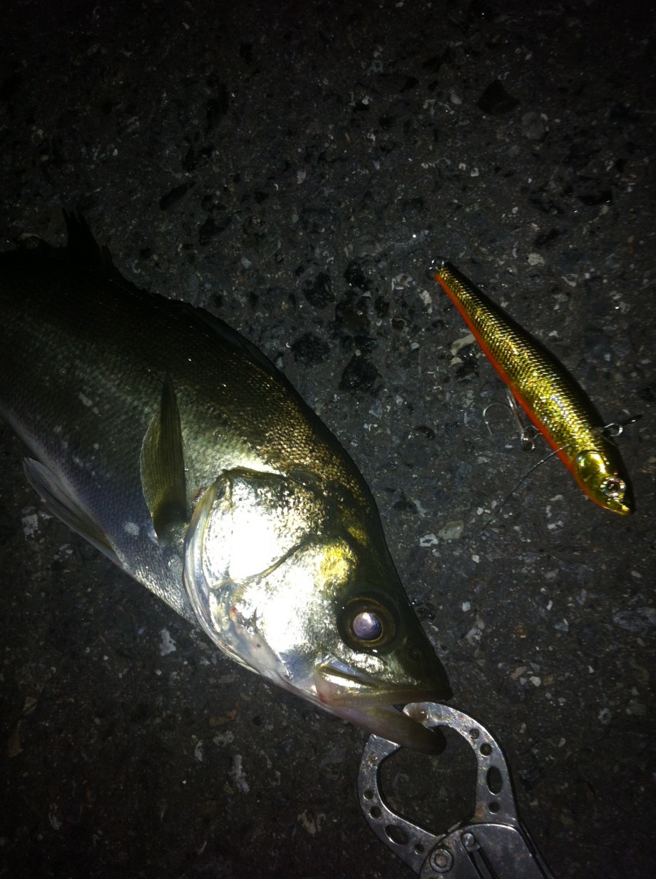 最後アングラーの方とお話ししたら2時間でセイゴ1本。