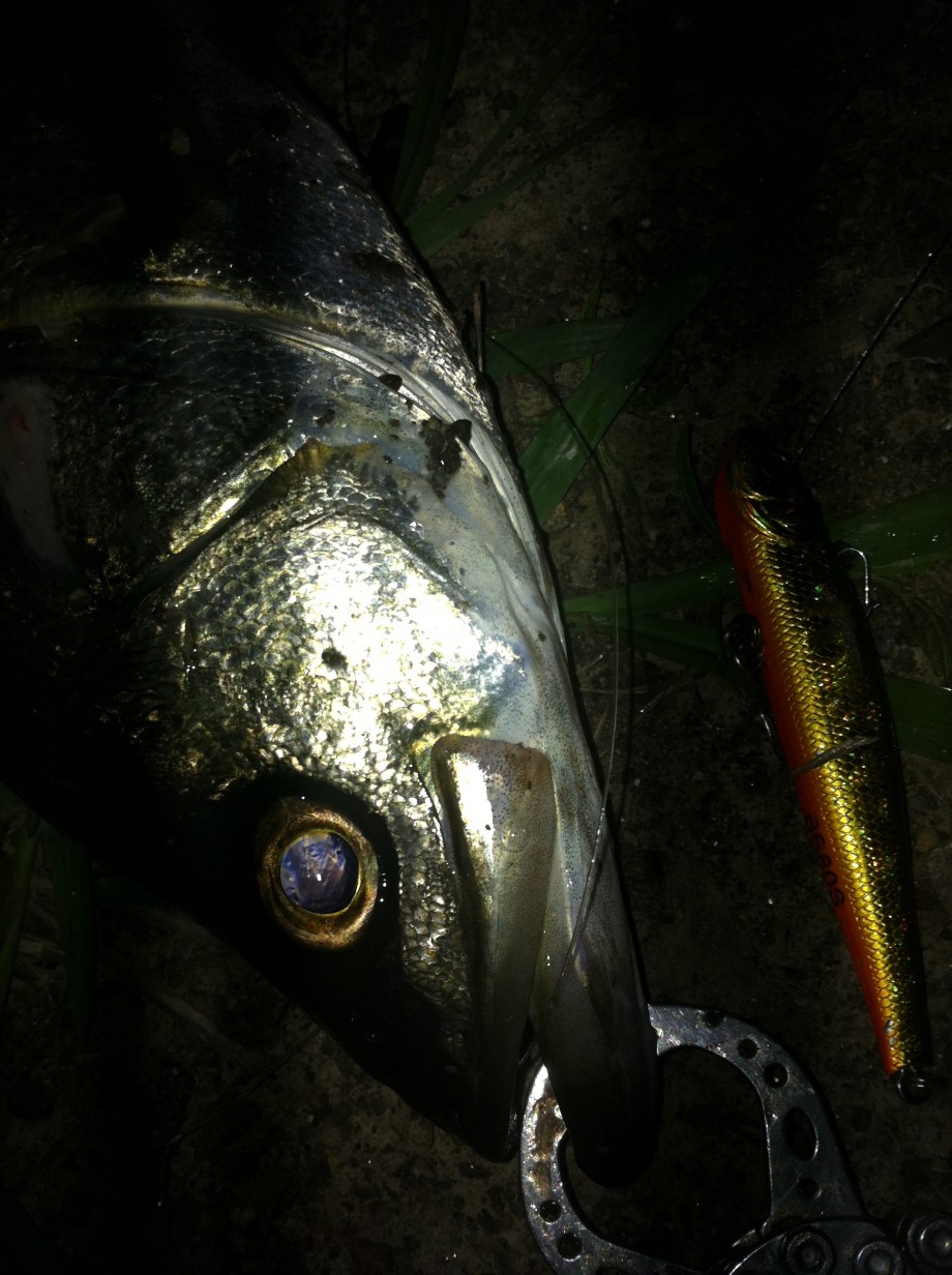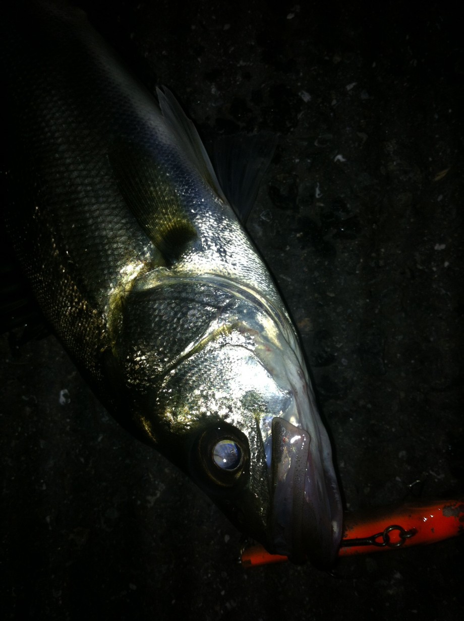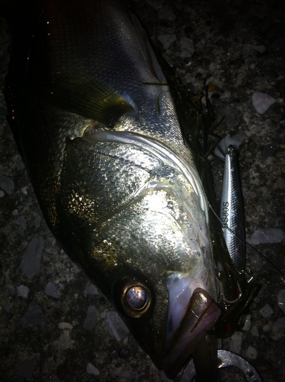 最後アングラーの方とお話ししたら2時間でセイゴ1本。