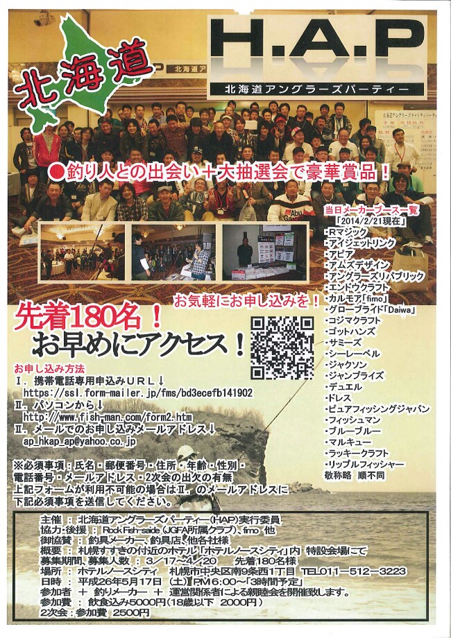 HAP 北海道アングラーズパーティー参加受付中です!